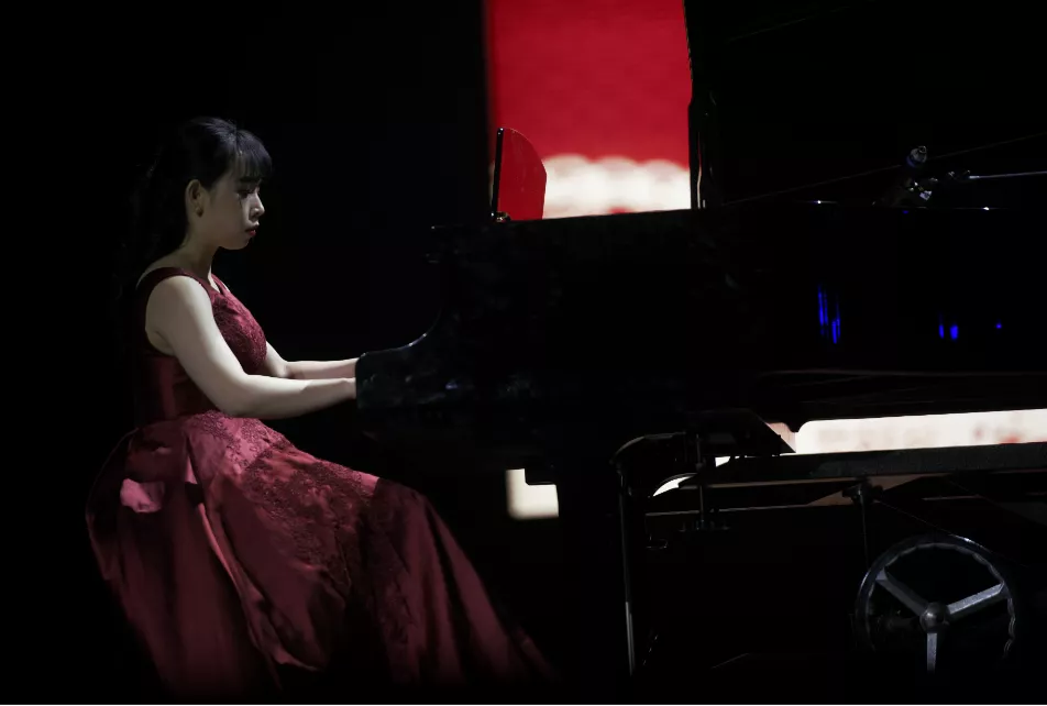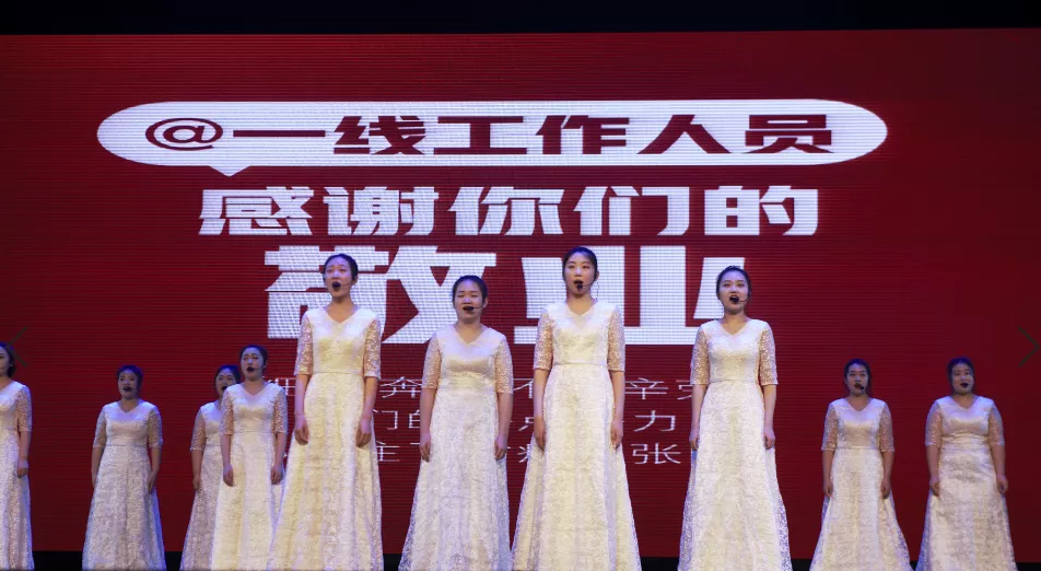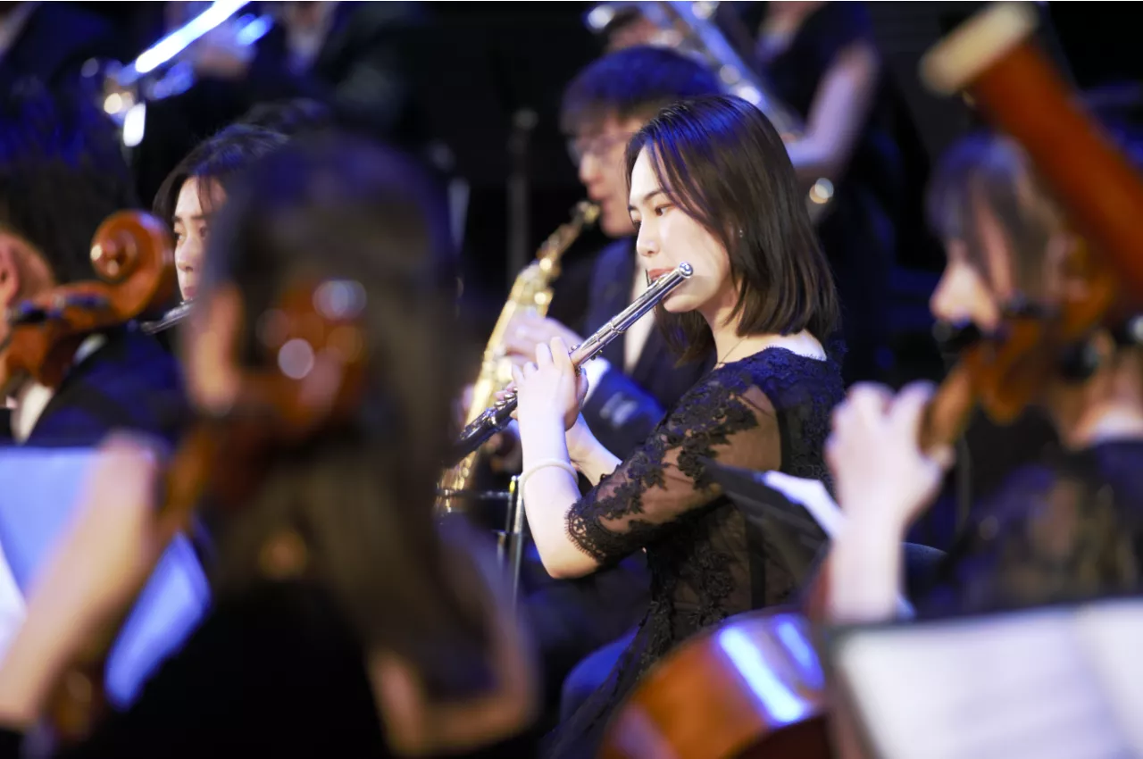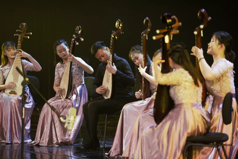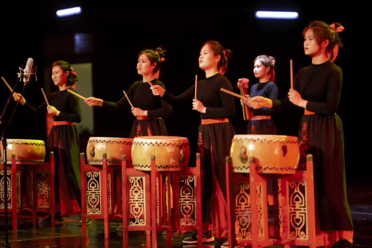 下半场,我院师生们通过管弦交响乐、女生合唱、钢琴独奏、鼓乐合奏、男女声独唱和多重唱、琵琶阮重奏等多种音乐表现形式,为现场观众献上了一场充满家国情怀的新年音乐会。
