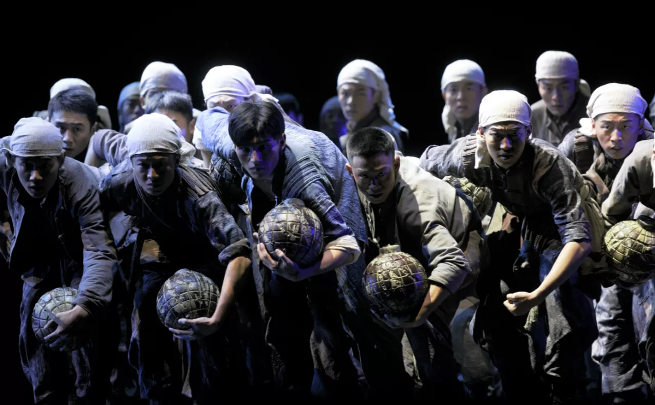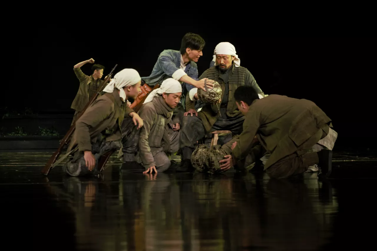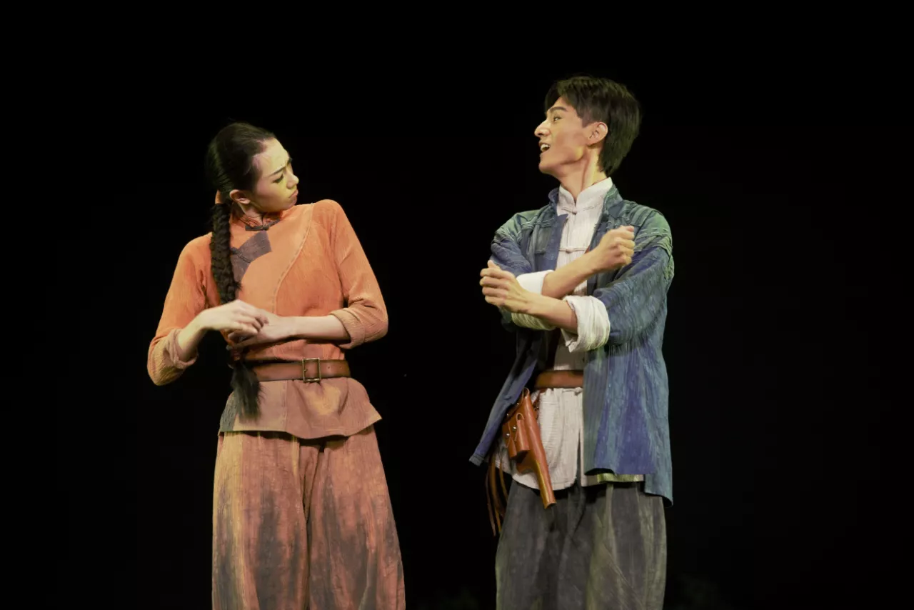 本场演出分为上下半场,上半场为原创舞剧《地雷战》,由我院师生主创及演出。该剧通过海阳大秧歌等多种音乐舞蹈表达形式,在充分整合海阳地区非物质文化遗产“海阳秧歌”的基础上,以抗日时期海阳地区的“地雷战”为故事原型,将其改编为舞剧并搬上舞台,生动展现了地雷战这段耳熟能详的胶东抗战故事,深情讴歌了胶东儿女英勇无畏的爱国主义精神。这是对习总书记所提出的“文化自信”的高度响应,也是新时代对本土文化进行自我认同的重要举措。随着剧情的发展,音乐与舞蹈演员的表演时而舒缓深情、时而紧张刺激,时而轻松诙谐、时而磅礴大气,让台下观众的心绪重新回到那段激情燃烧的岁月。