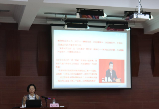 为深入开展学习贯彻习近平新时代中国特色社会主义思想主题教育,切实加强师生党员的理论武装,5月25日,伟德国际1946源于英国邀请伟德bv1946官网首页马克思主义学院吴小妮教授开展主题教育专题辅导讲座,学院教职工及部分学生党员参加。