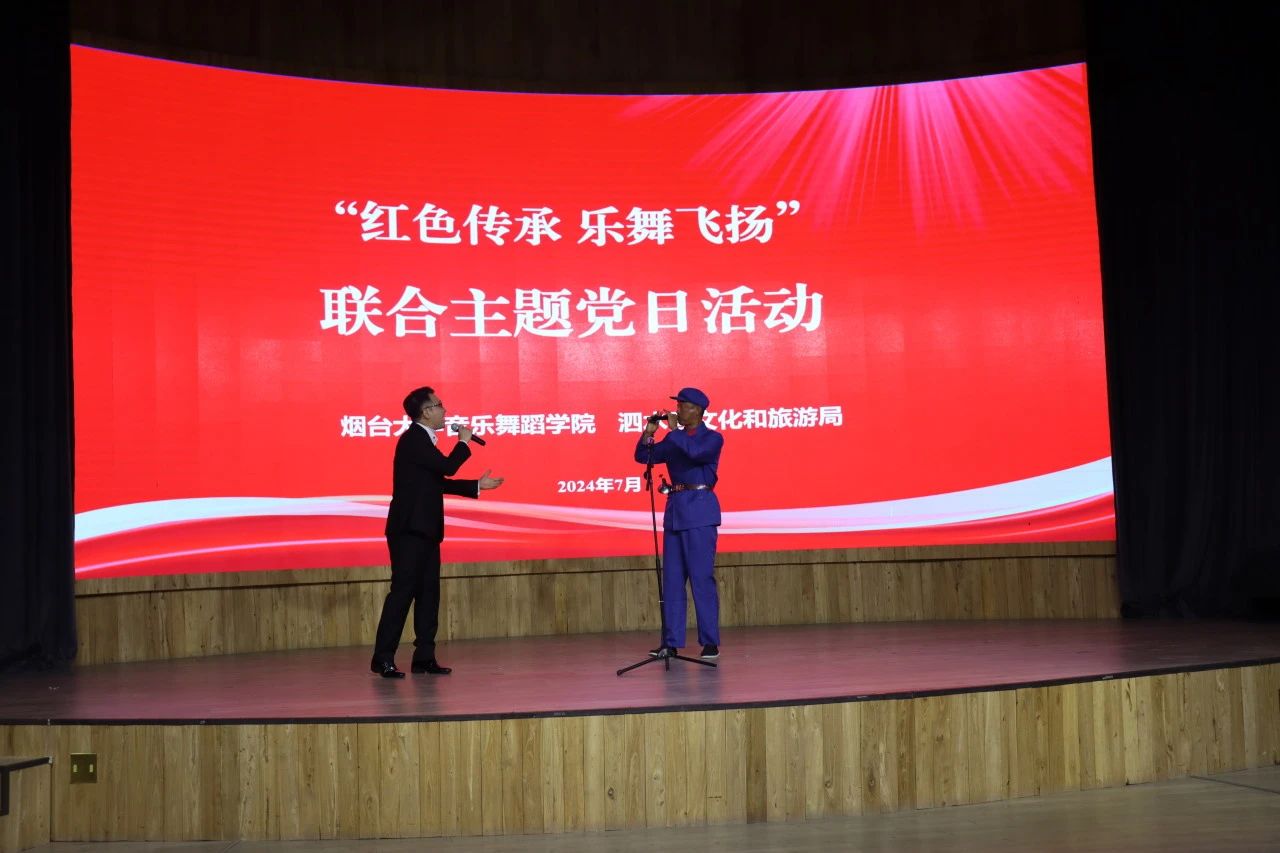 秉承文艺服务基层理念,学院张文龙、冯海潮老师分别为泗水县教师合唱团和群众艺术文化馆开展合唱和舞蹈专题培训,助力基层文艺人才队伍建设。学院与泗水县文旅局联合举办“红色传承 乐舞飞扬”主题党日联建活动,学院师生倾情演绎了男声独唱《跟你走》、《把一切献给党》,胶东民歌小合唱《海阳的铁西瓜》,唢呐独奏《十送红军》、《敖包相会》等艺术作品,为泗水县人民奉献一场高水平文化盛宴。