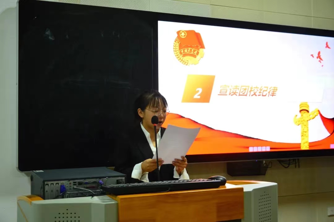 伴随着共青团团歌,培训班正式开班。学院团委志协部副部长杨艳茹介绍宣读团校纪律和考核制度。团员代表李佳悦发言,号召同学们不断提升自身综合素质,带领我院学生建立起良好的学习氛围,养成优秀的学习习惯。